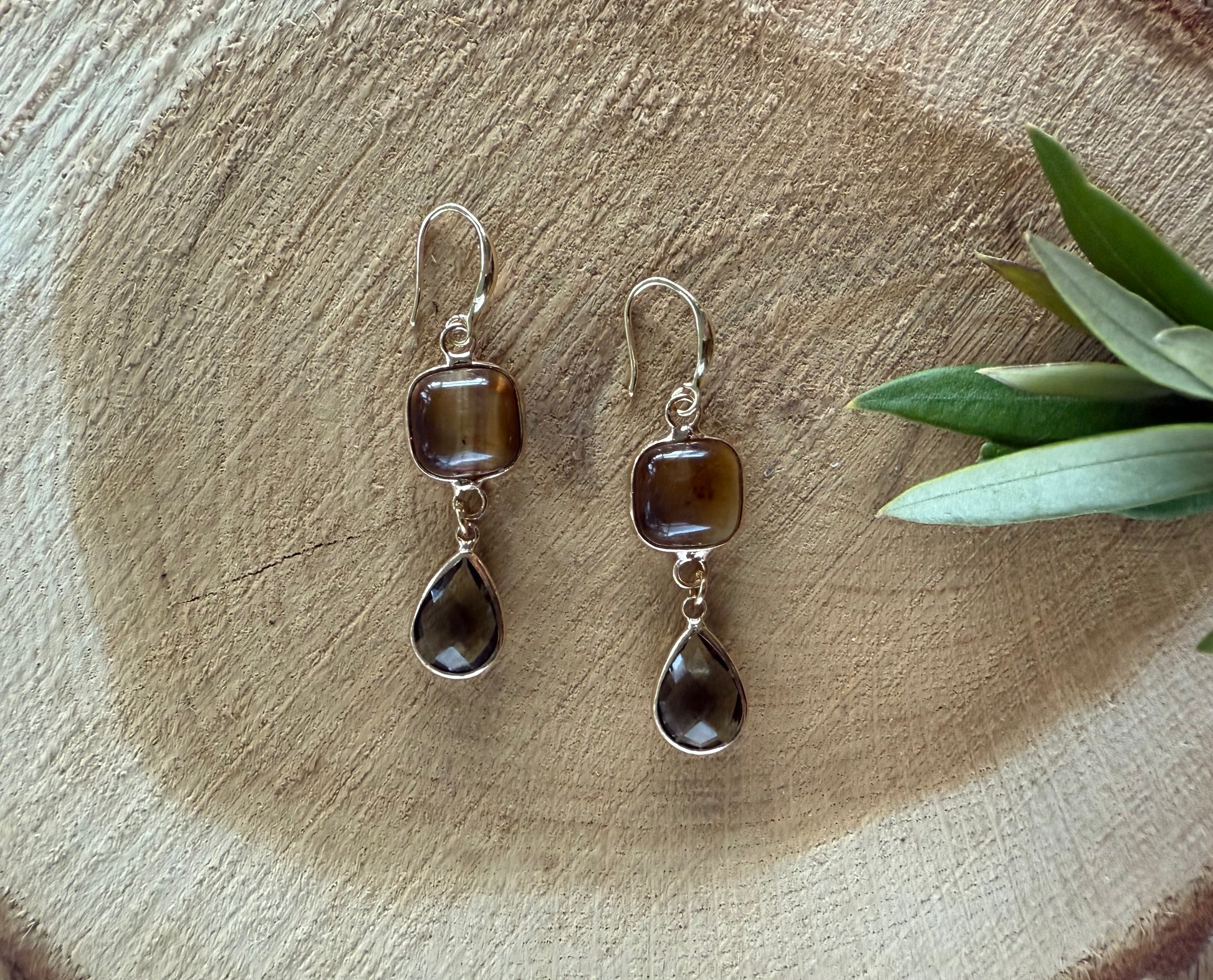 Bruine tijgeroog met kleine doorzichtige druppel