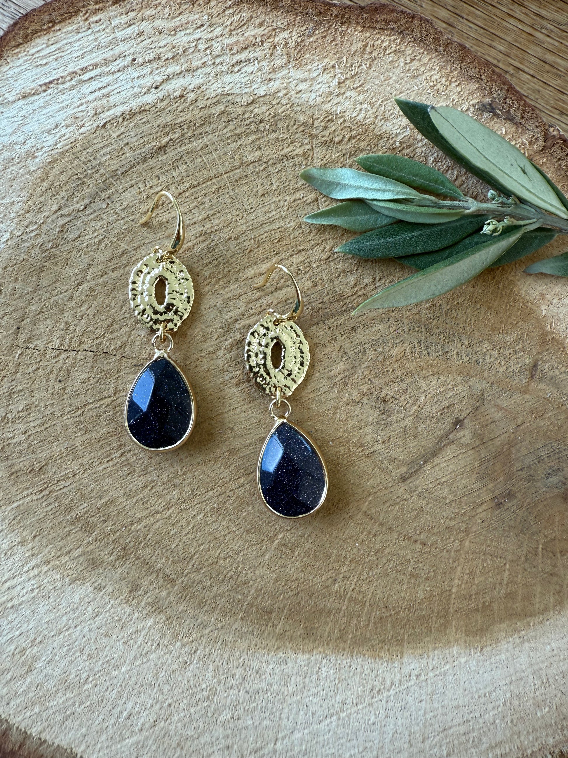 Donker blauwe natuursteen met glittertjes aan ovale connector