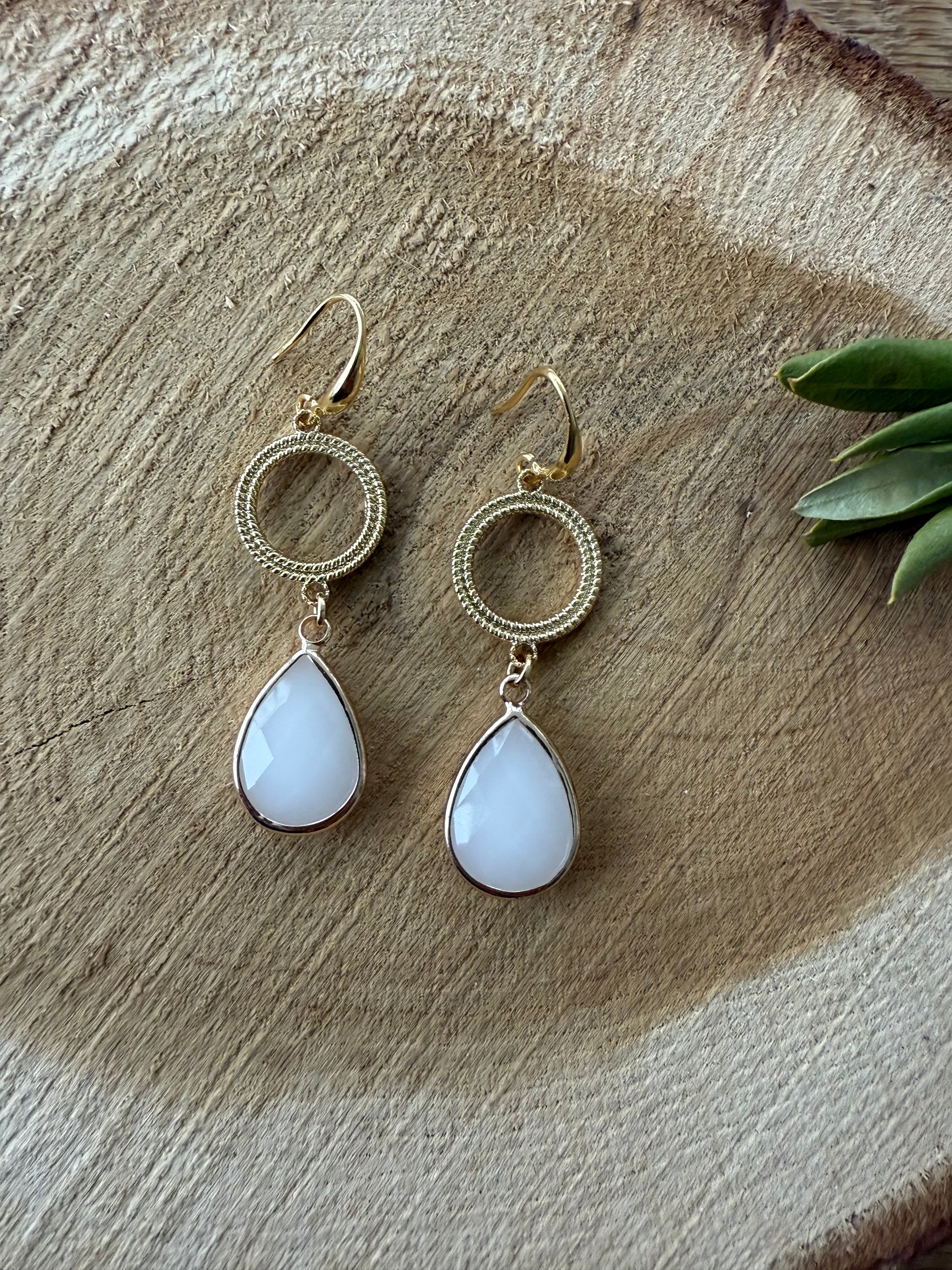 Witte facetsteen aan open connector