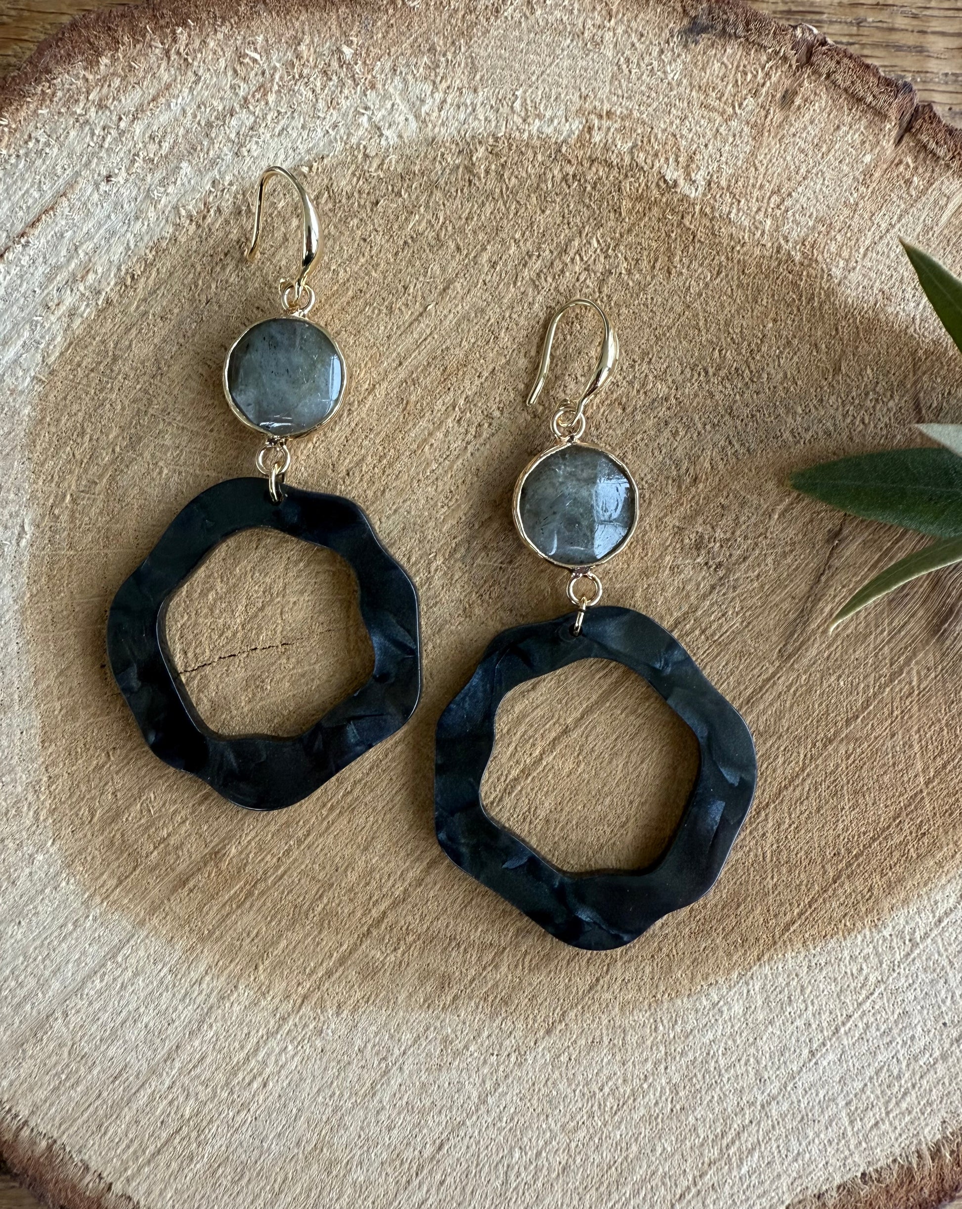 Grijze natuursteen met zwart gemêleerde resinhanger