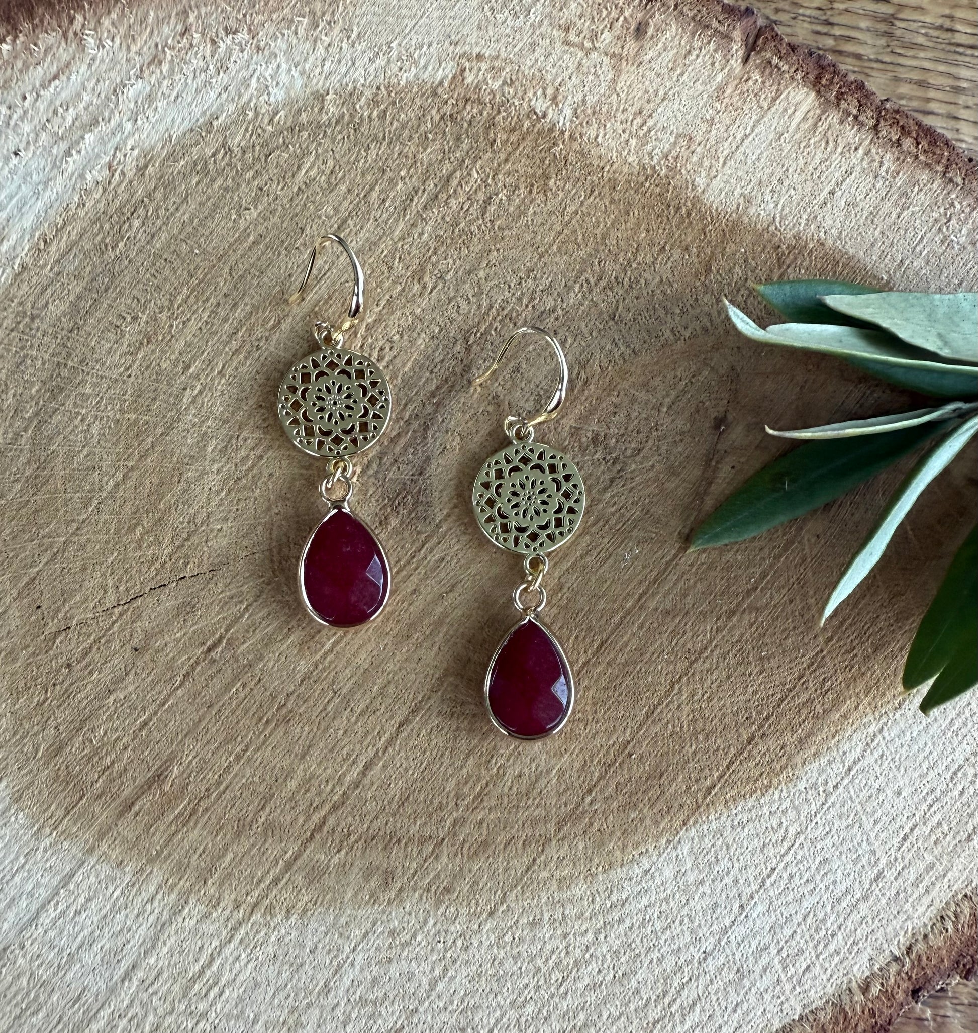 Kleine bordeauxrode natuursteen druppel aan ronde connector