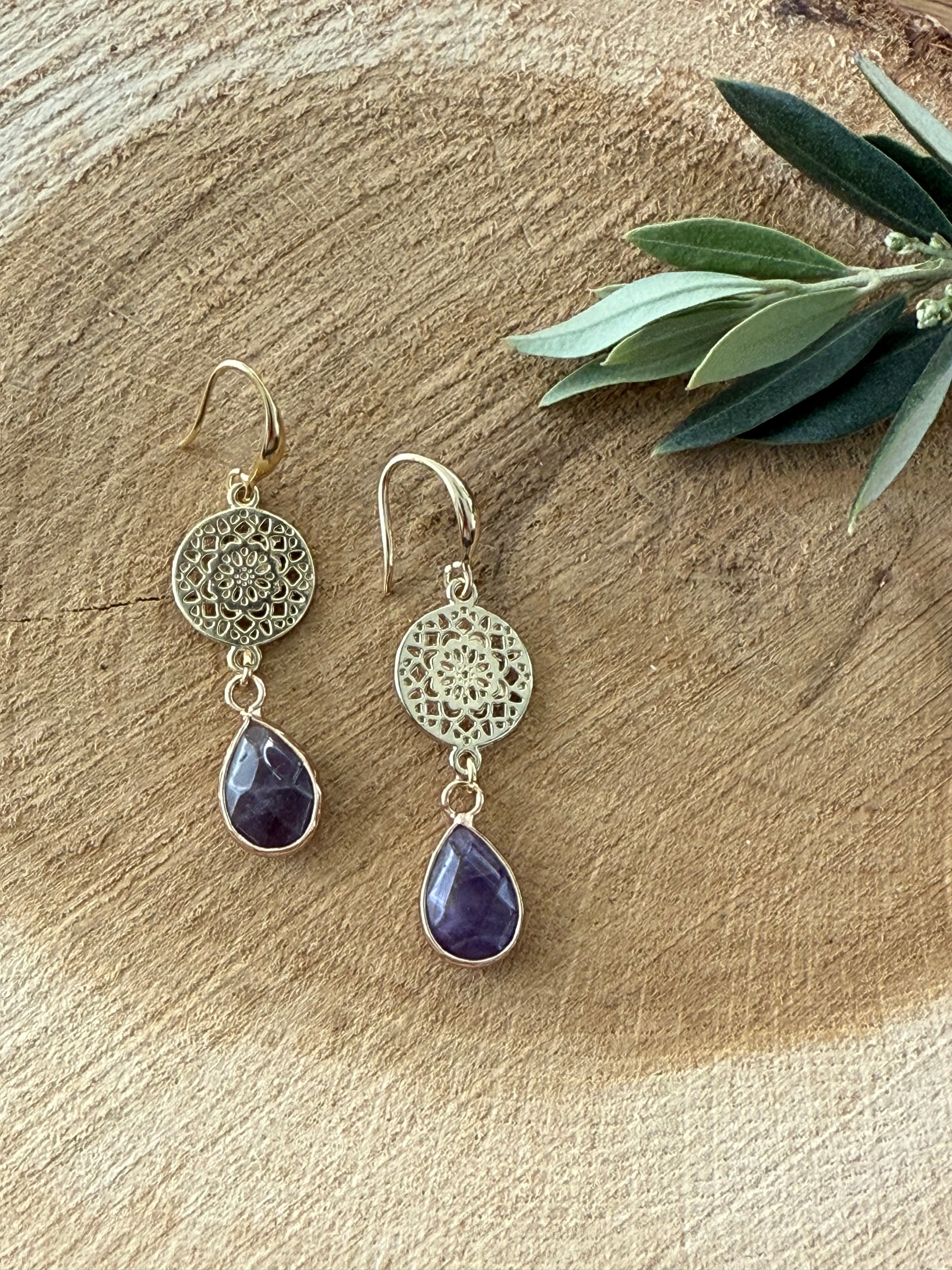 Kleine paarse natuursteen druppel aan ronde connector
