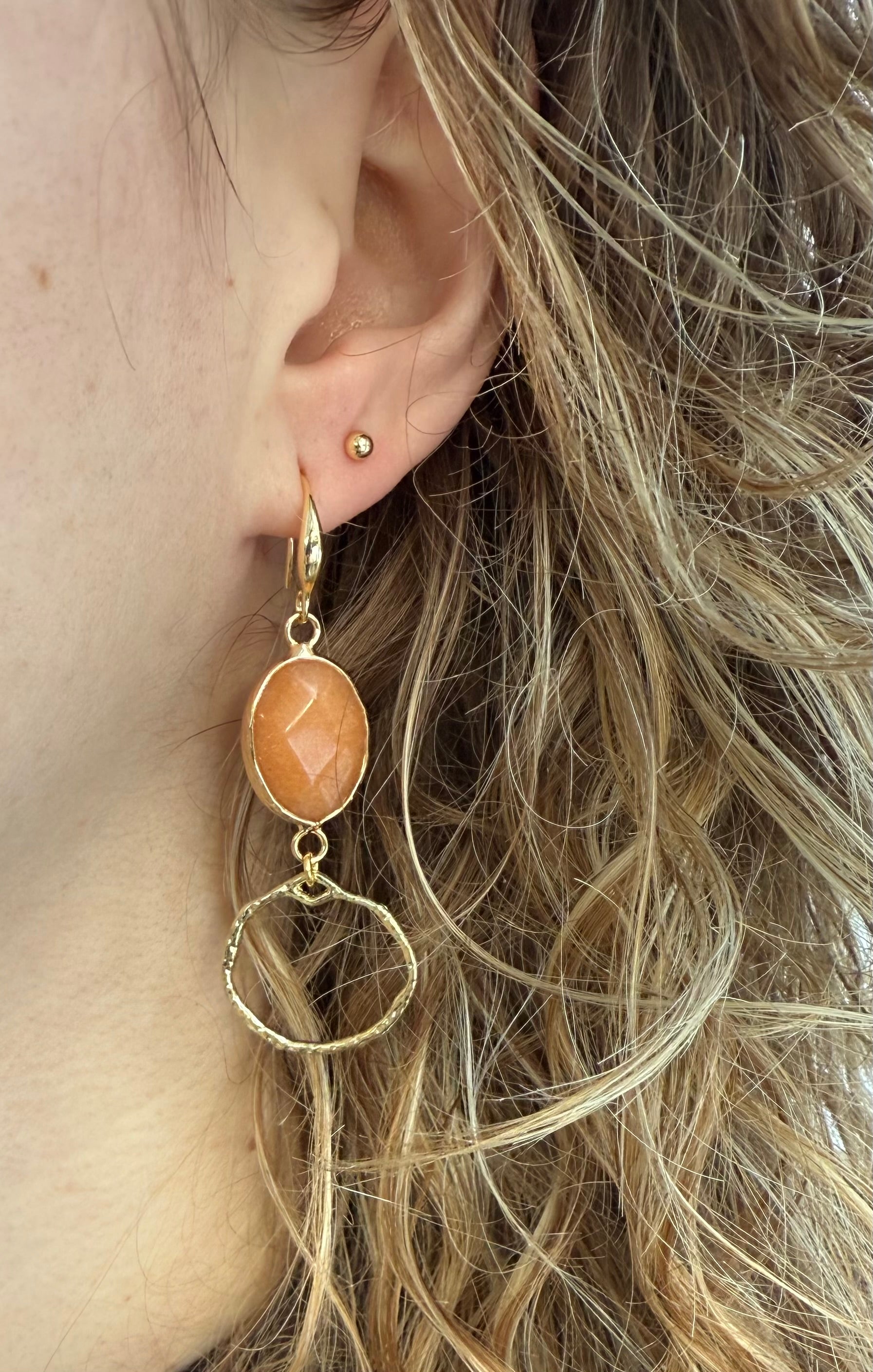 Bruin/oranje natuursteen met gehamerd hanger