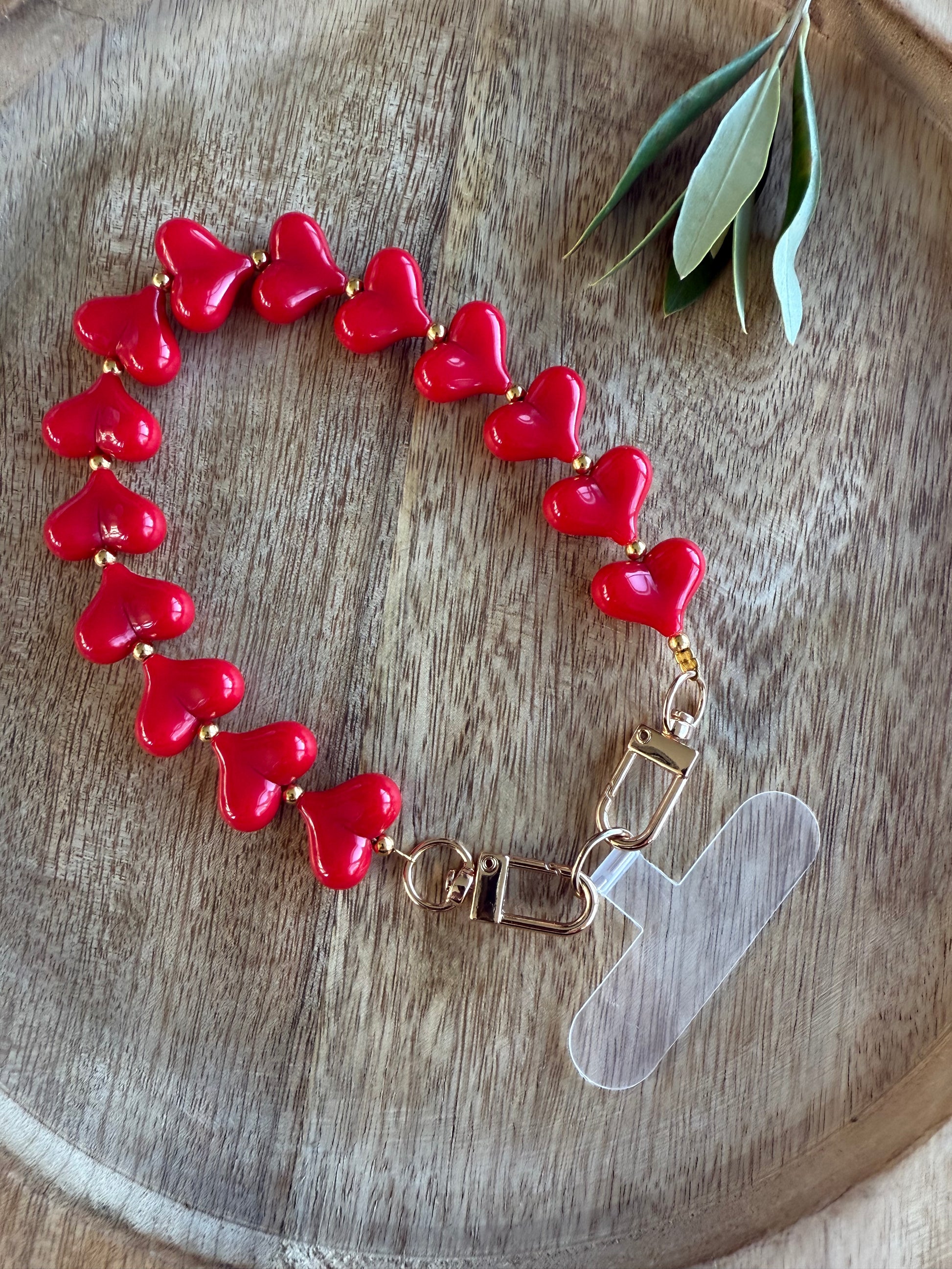 Telefoonkoord hartjes rood