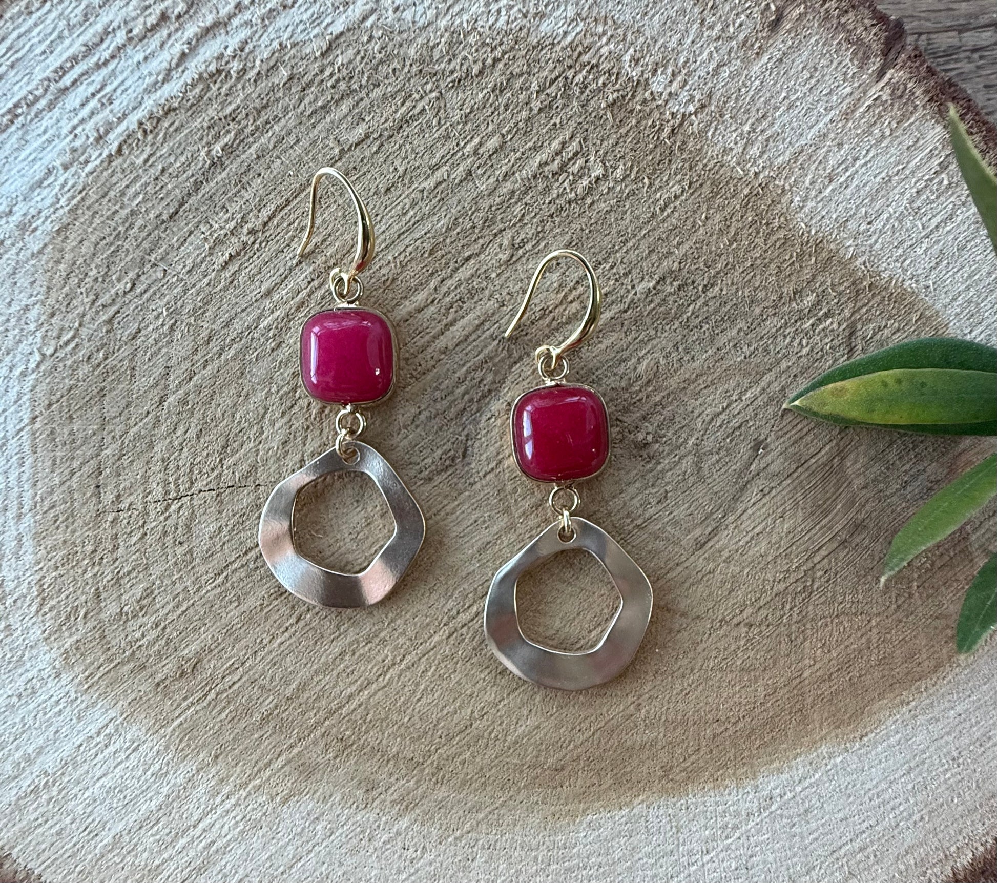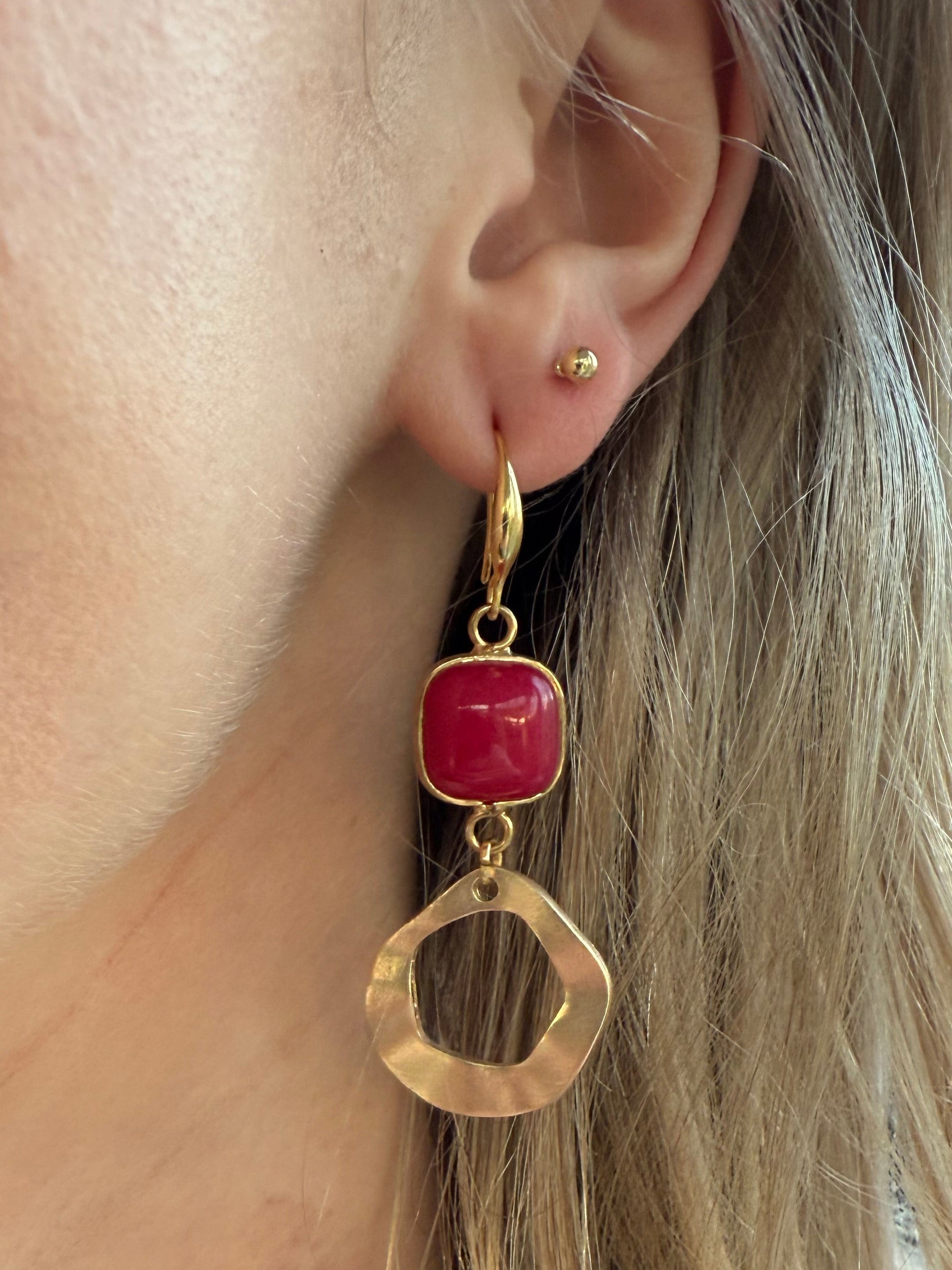 Vierkante rode steen met ongelijke hanger