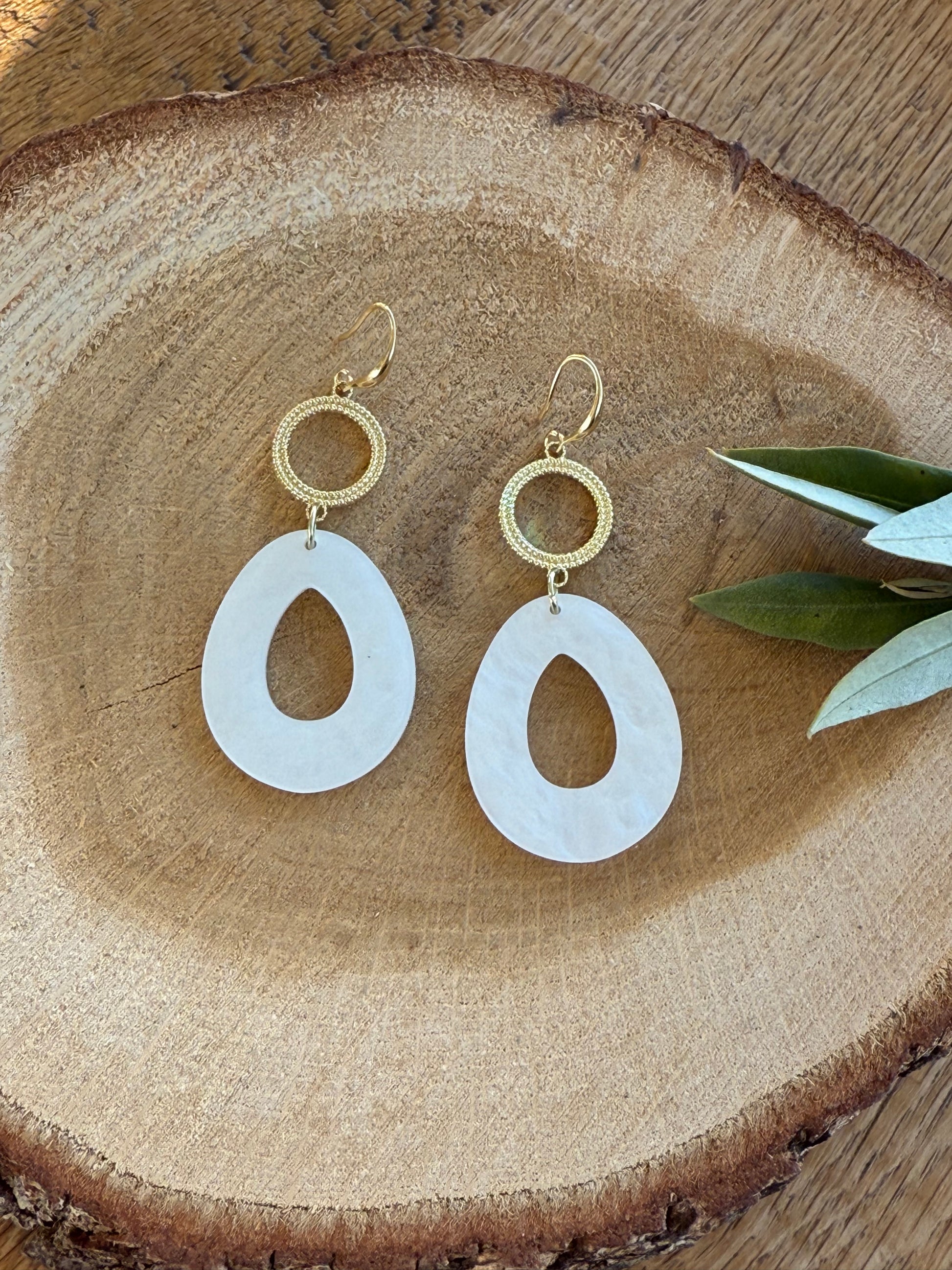 Witte resin hanger aan open connector