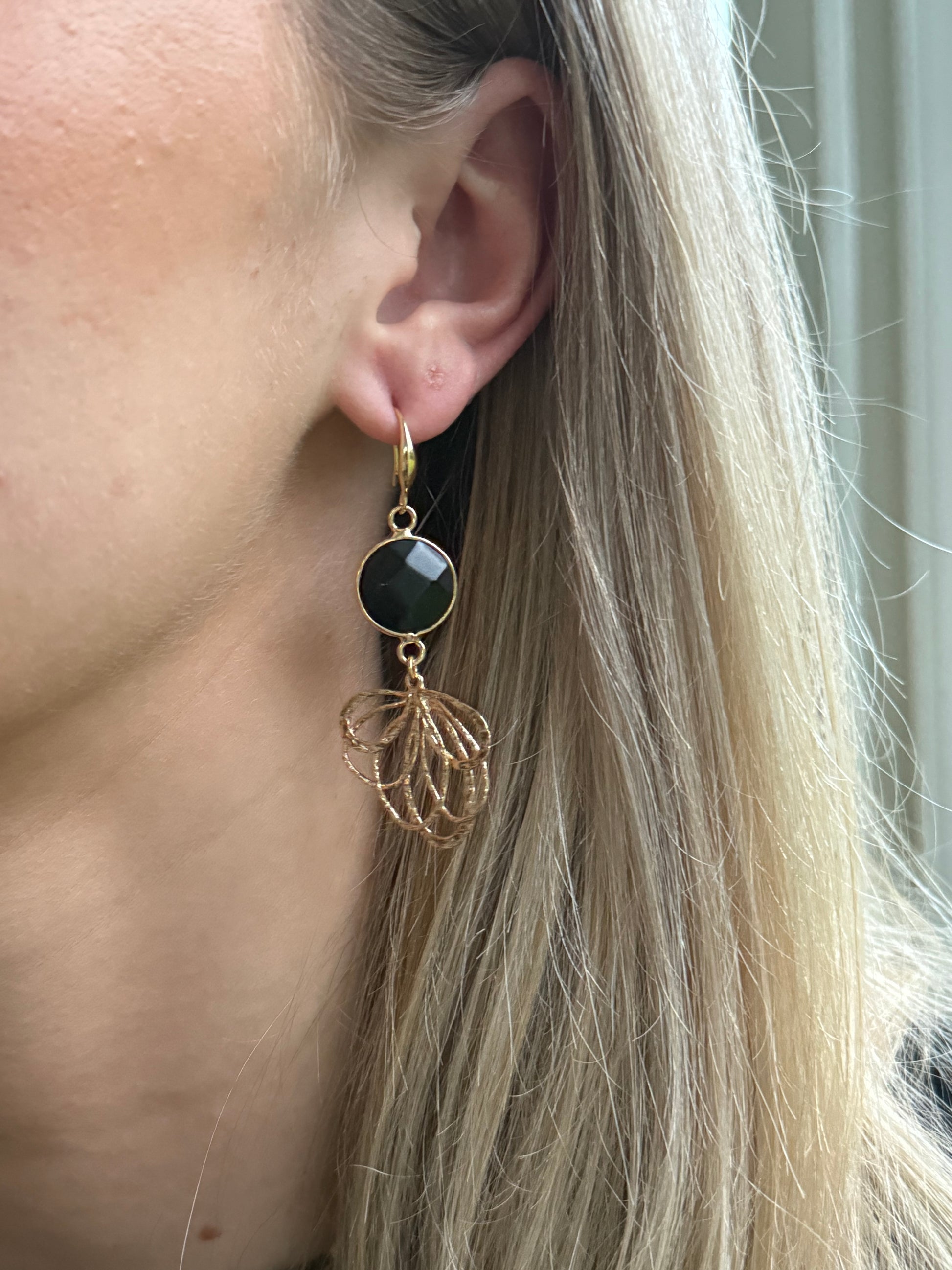 Zwarte natuursteen met gevlochten bloem